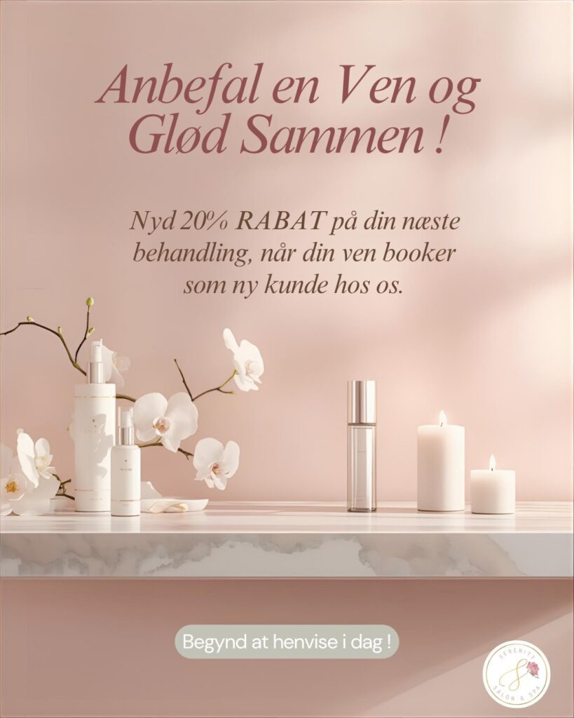 Send an email to info@serenitysalon.dk with the subject ‘Refer a friend’ and write your friend’s name and phone number,