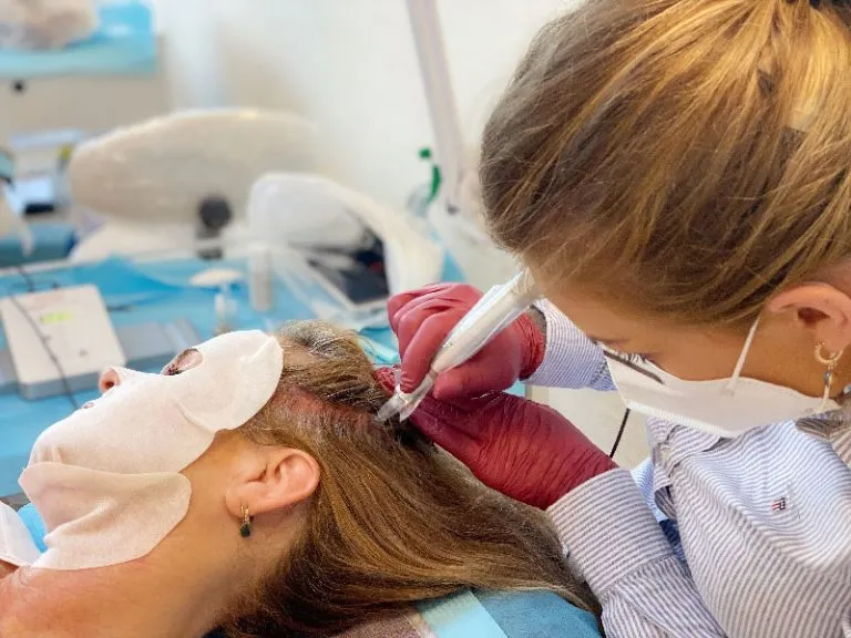 Behandlingen er smertefri og udføres uden nogle former for topiske bedøvelsesmidler. Det gør, at din hovedbund og de eksisterende hårsække er maksimalt modtagelige for hårvækstserummet, man arbejder ind i huden.