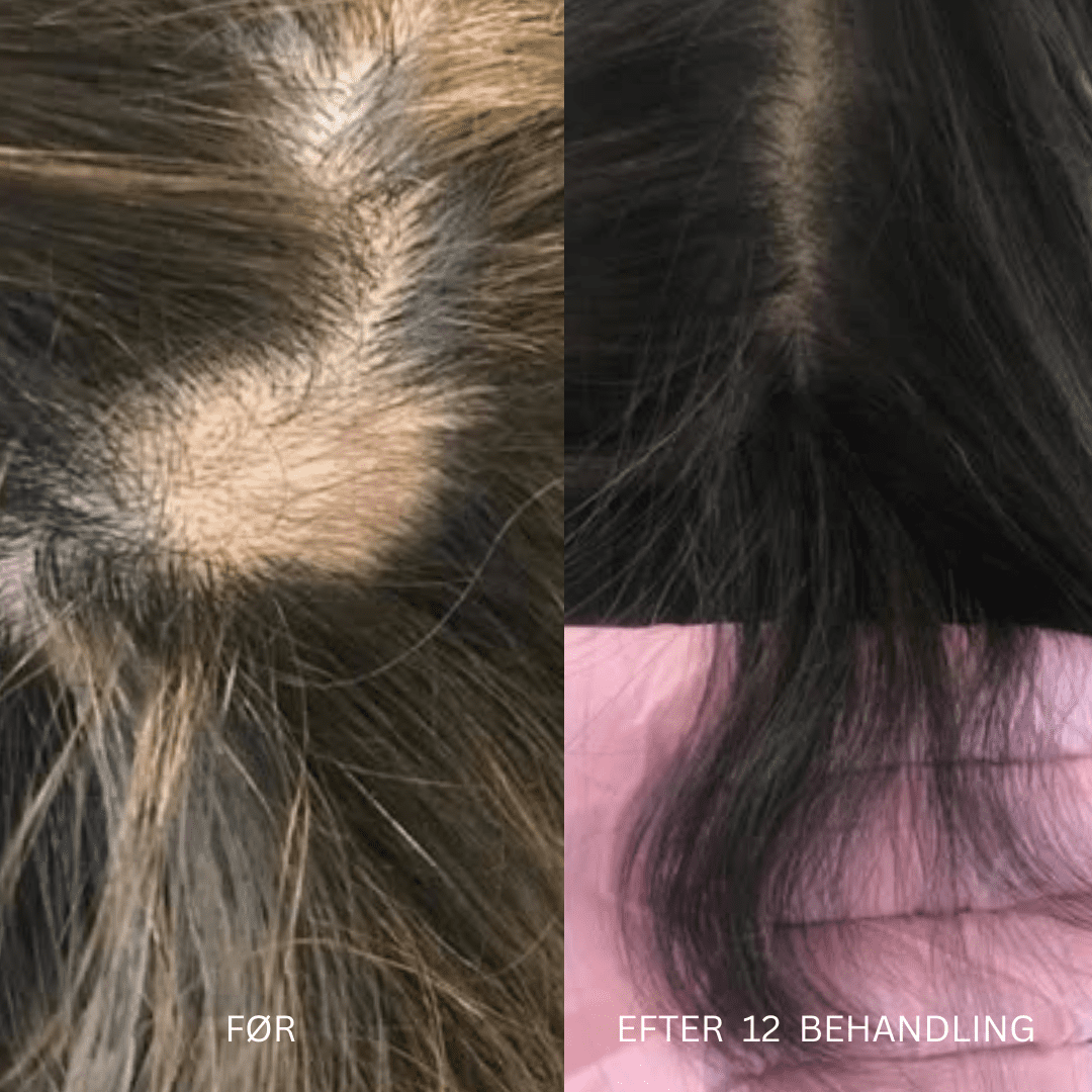 Behandlingen arbejder på at forbedre hårbunden, så nye hår vokser frem sundere, stærkere og med mere volumen og glans.