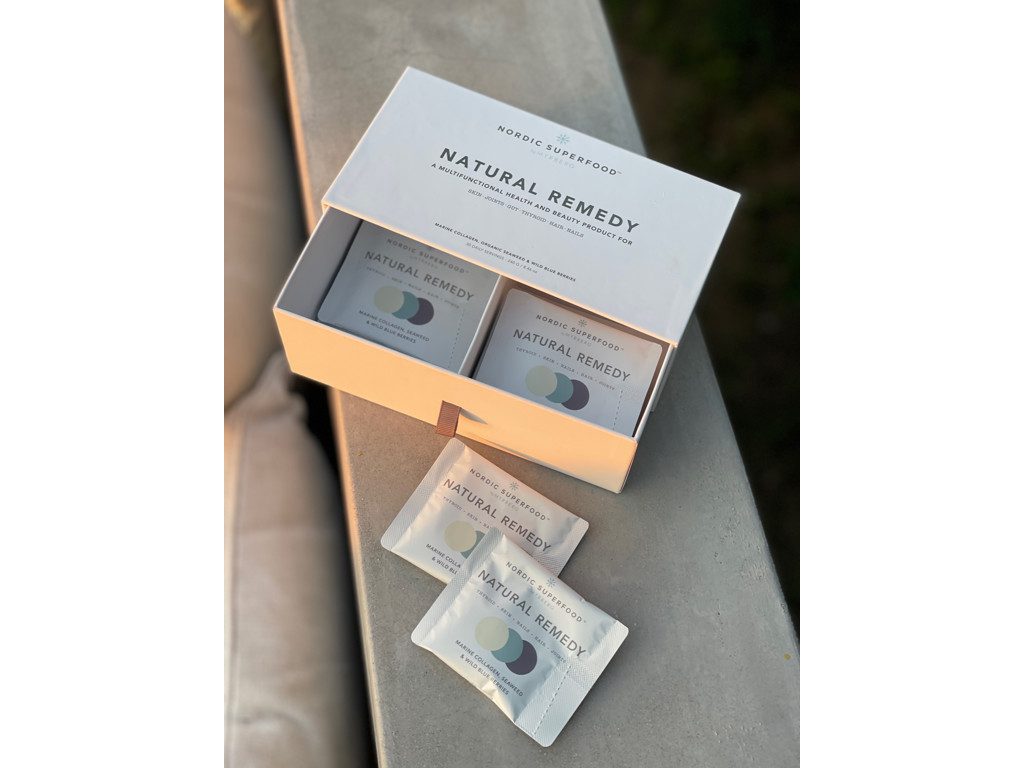 Collagen Premium+++ Natural Remedy Box fra Nordic Superfood er skabt til dig, der ønsker synlige resultater uden besvær. Hver boks indeholder 30 praktiske portionsposer med marint mikrohydrolyseret kollagen fra vildtfanget norsk torsk – kombineret med nordiske bær og tang. Resultatet er et dagligt ritual, der støtter hud, hår, negle og din indre balance, uanset hvor du er.